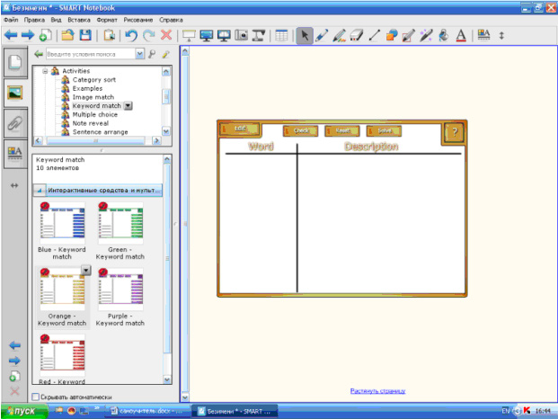 Сразу же необходимо отметить, что коллекция предназначалась для англоязычных учителей, поэтому название всех интерактивных средств, описание работы с ними и указания для редактирования - даны на английском языке. Это достаточно неудобно, но не смертельно, поскольку совместными усилиями мы эту языковую трудность легко преодолеем. Достаточно знать назначение того или иного средства, общие принципы редактирования, а также запомнить значение десятка английских слов.