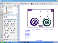 ИС для сортировки объектов на две категории, но значительно более интересное, выполненное в форме игры. Имеется два "водоворота" с конкретными названиями, под ними - в случайном порядке картинки, числа, слова (до 16). Необходимо "утопить" все эти объекты в "своем" водовороте. Какой считается "своим" - задается в процессе редактирования.