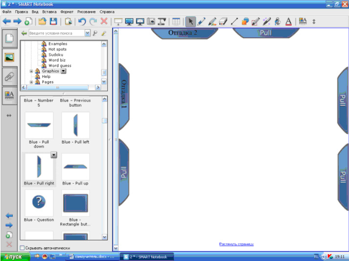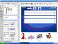 Страницы эти содержат "заготовки" для учителя, т.е. имеется в виду, что учитель должен разобраться в назначении этих заготовок и наполнить их конкретным содержанием. Часть таких страниц действительно можно эффективно использовать. Главное - разобраться с их назначением (все та же трудность, связанная с английским языком). Хотя эти страницы и не являются интерактивными, можно рассмотреть в качестве примера последовательность "адаптации" какой-то страницы под нужды учителя. В этом разделе всего одна группа интерактивных объектов - разноцветные перемещаемые закладки. Очень удобное ИС, позволяющее "прятать" текстовую или графическую информацию за пределами страницы и в нужный момент ее "выдвигать". Таких закладок можно заготовить и спрятать на каждой странице несколько.