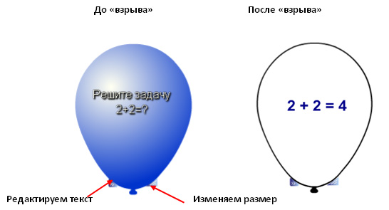 Название говорит само за себя. С помощью этого шарика можно реализовать самый "ходовой" применительно к интерактивной доске технический прием "Спрятать - Показать". Идея такова: размещаем на страничке какой-то информационный объект, закрываем его шариком. На шарике можно что-то написать, причем - по-русски. И изменять его размеры. Для этого на нем имеется две маленькие кнопки. При щелчке по шарику он "взрывается", становясь при этом прозрачным. И открывает спрятанное под ним:
