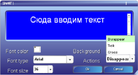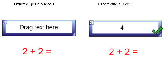 Это ИС позволяет организовать проверку правильности ответа на некоторое задание. При редактировании дается эталон правильного ответа (жаль только, русские буквы нельзя использовать). Во время работы с этим средством нужно подготовить при помощи инструмента Текст ответ и переместить его в заданную рамку. Если ответ соответствует заданному эталону, появится зеленая галочка, если нет - красный крестик: