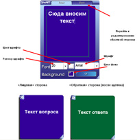Выглядит, как прямоугольная двусторонняя табличка. При щелчке "переворачивается" обратной стороной. В процессе редактирования вносится текст, содержащийся на каждой стороне, например, на одной стороне вопрос, на другой - ответ: